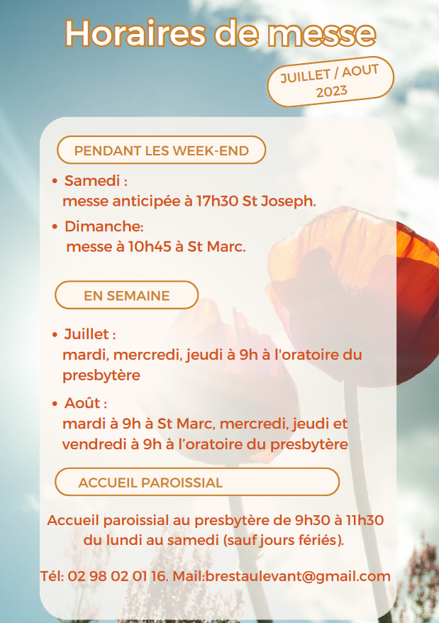 Monseigneur Dognin m’a nommé administrateur de notre paroisse « Brest – Notre-Dame au Levant » en remplacement du Père Adam qui rejoint son diocèse de Varsovie à Prague. Il me nomme également doyen (c’est-à-dire coordinateur du doyenné de Brest qui comprend 5 paroisses : Brest Notre-Dame au Levant + Brest Centre – Saint Louis + Brest Lambezellec Saint Laurent + Brest Sainte Trinité + Brest Elorn Saint Pierre et Paul.