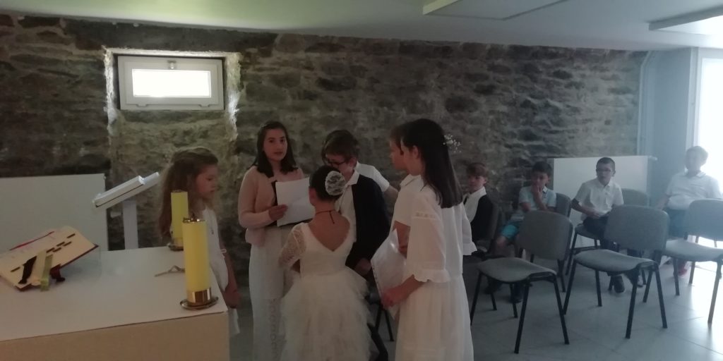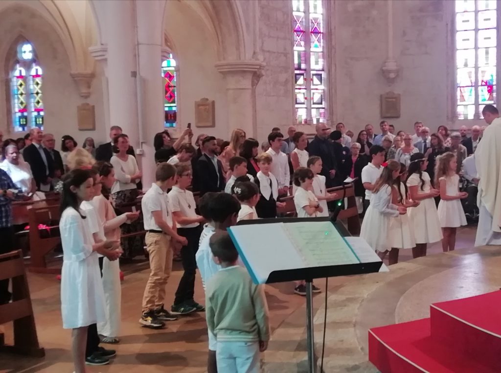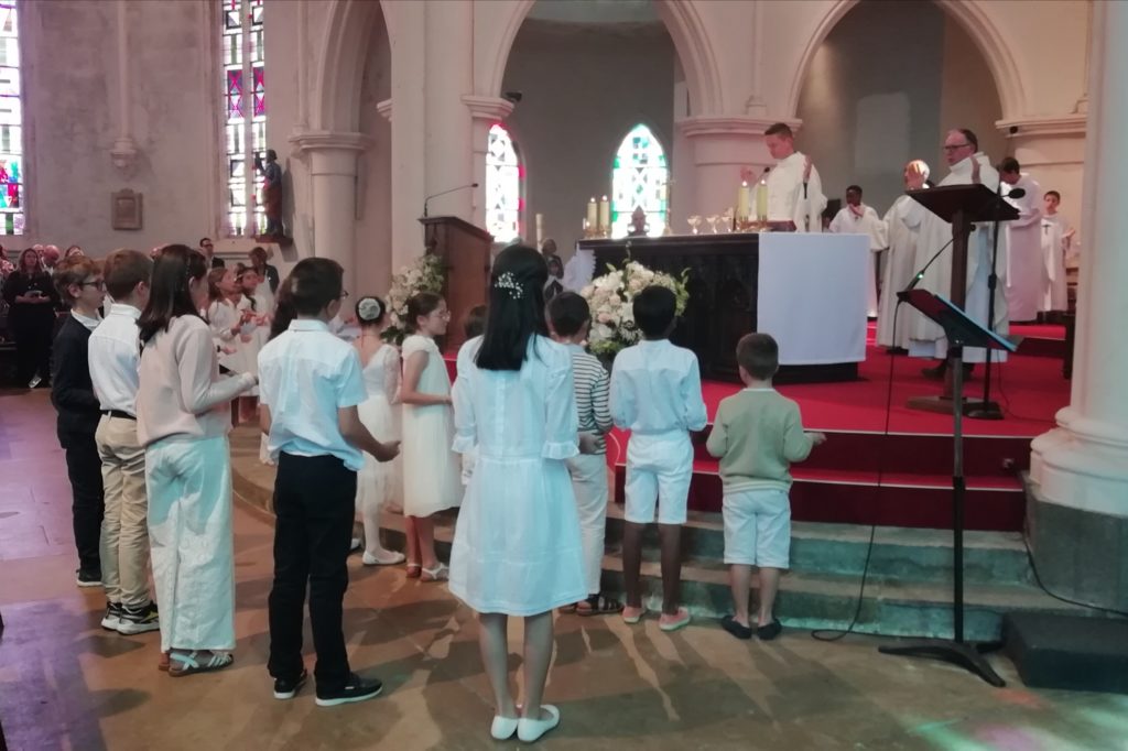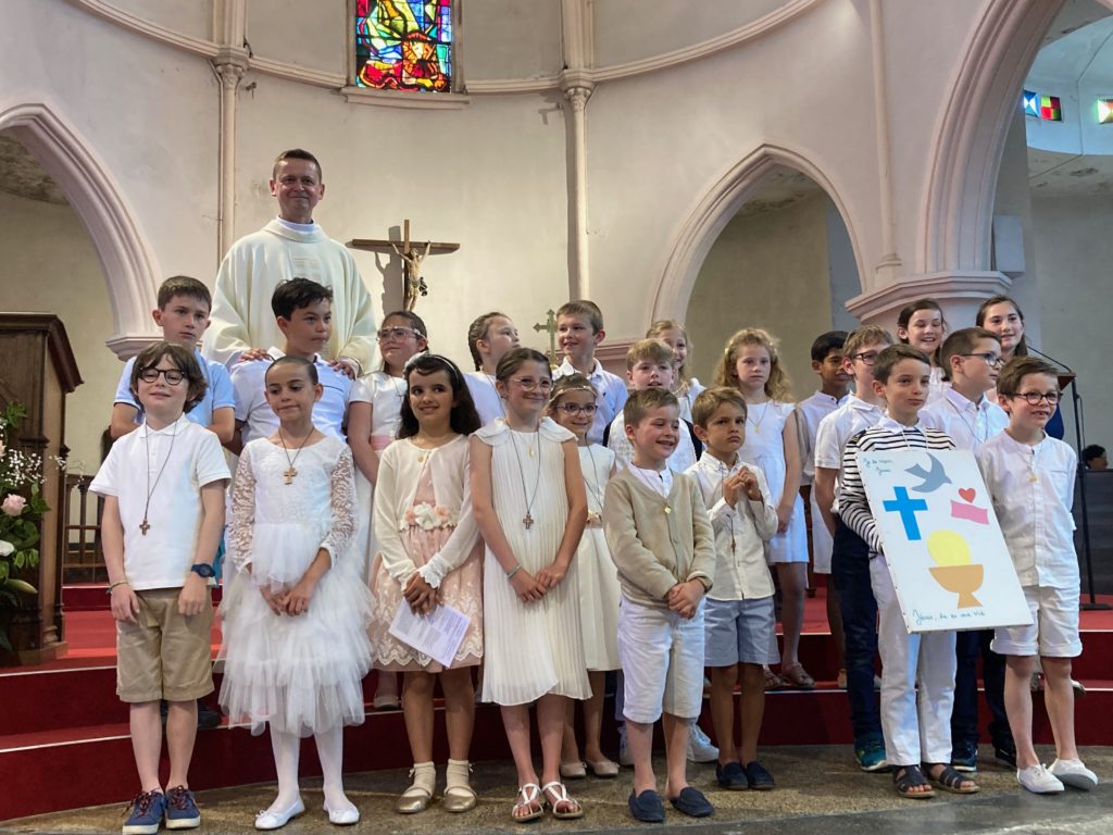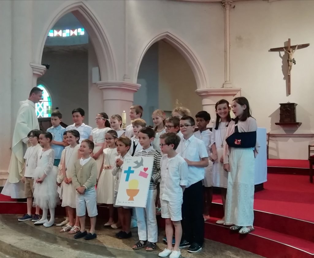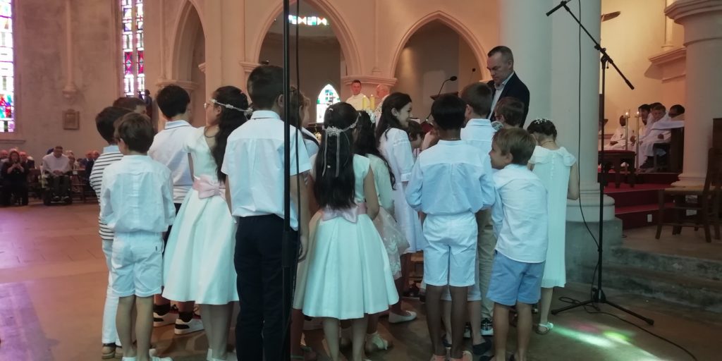 Dimanche 11 juin, à la messe de 10h45 à St Marc, les jeunes de 10 à 12 ans qui s’y sont préparés ont reçu l’Eucharistie pour la première fois.
