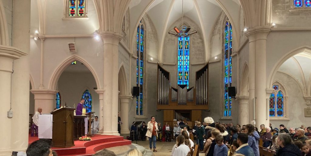 Lors de la messe des familles du 27 novembre, les enfants qui se préparent à la première communion ont reçu une croix, un Nouveau Testament et toutes les prières de l’assemblée.