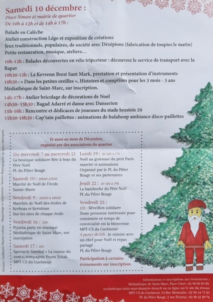Le samedi 10 décembre, le bourg de Saint Marc s’animera autour de la place Simon. Des ateliers de bricolages en musique sont ouverts à tous pour entrer dans la joie de Noël.